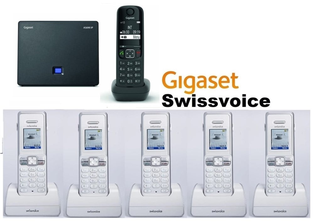 6 Dahili 1 Adet Gigaset AS690IP Telsiz Telefon+ 5 Adet Swissvoice Telsiz Telefon